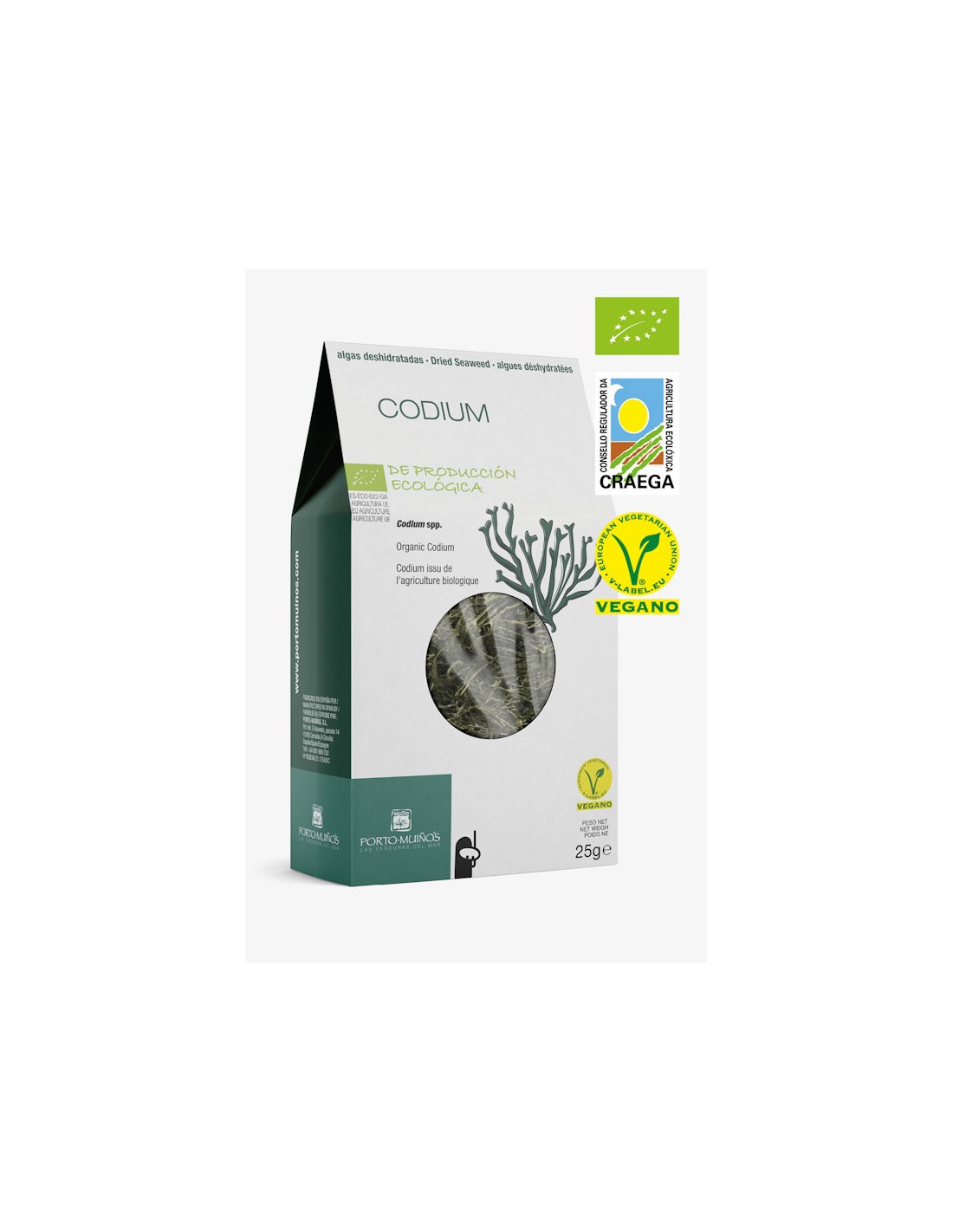 Porto MuiñosLa Codium, chiamata in spagnolo anche "Percebe" perchè ricorda questo tipo di crostacei tipici, è un'alga marina, qui in versione disidratata e biologica dal gusto delicato e dalla consistenza sorprendente. È un tesoro naturale che arricchisce ogni piatto con minerali, fibre e sostanze funzionali, perfetta per un'alimentazione 100% vegetale. Un'alleata preziosa anche per chi convive con glicemia alta o vuole mantenere stabili i livelli di zucchero nel sangue.