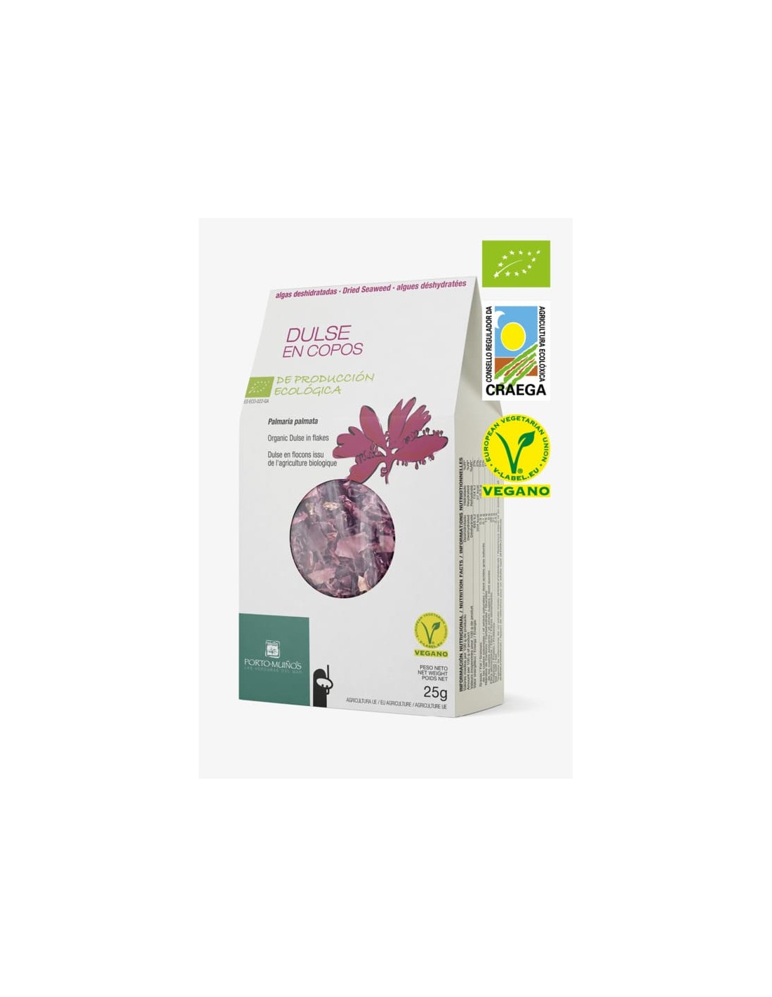 L’Alga Dulse (Palmaria palmata) è una varietà rossa di alga marina con un gusto intenso e caratteristico, dal profilo naturalmente umami. È un alimento 100% vegetale, coltivato biologicamente e raccolto a mano nel rispetto dei cicli naturali. Dopo la raccolta, viene disidratata a bassa temperatura per mantenere intatte le sue proprietà nutrizionali, senza bisogno di additivi o conservanti.