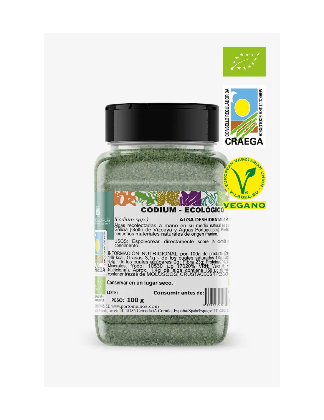 Porto MuiñosUna polvere verde intensa, pura e potente, che racchiude tutta la vitalità dell’oceano. L’Alga Codium biologica, raccolta a mano e finemente macinata, è la tua nuova alleata per una cucina 100% vegetale, ricca di gusto e benessere.