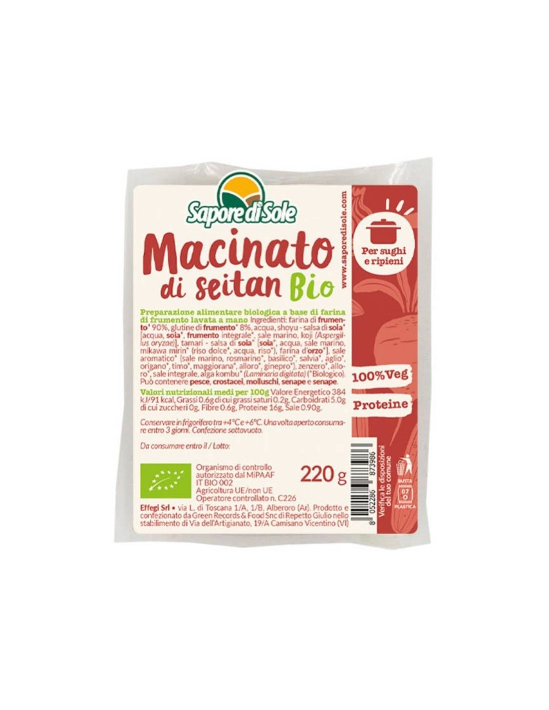 Il Macinato di Seitan Bio Sapore di Sole è una preparazione alimentare a base di frumento biologico, pensata per chi desidera portare in cucina un ingrediente vegetale strutturato, saporito e facile da utilizzare. Grazie alla sua consistenza compatta e al profilo aromatico arricchito con erbe e alga kombu, è perfetto per sughi, ripieni e preparazioni creative.