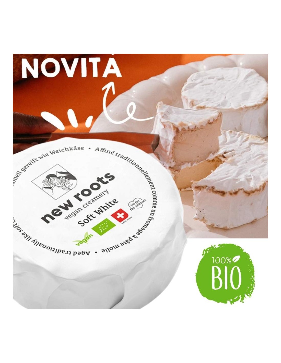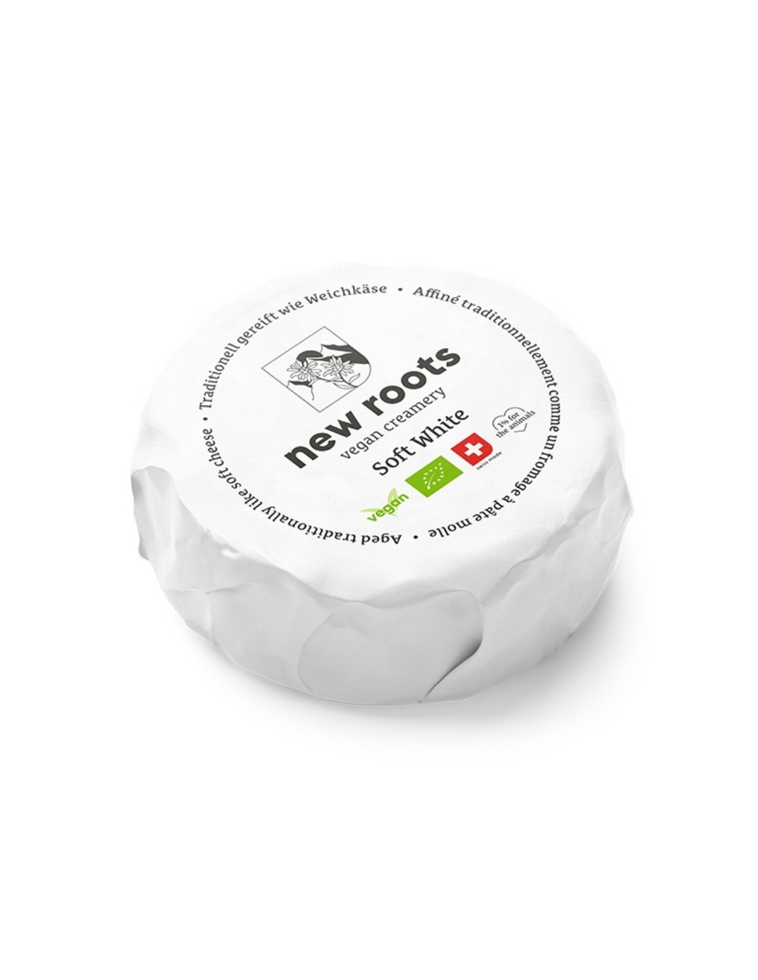 Il Soft White a Crosta Fiorita New Roots è una reinterpretazione contemporanea di uno dei grandi classici della tradizione europea. Prodotto in Svizzera a partire da anacardi biologici, viene fermentato e maturato per tre settimane secondo metodi ispirati alla lavorazione dei formaggi a crosta fiorita.