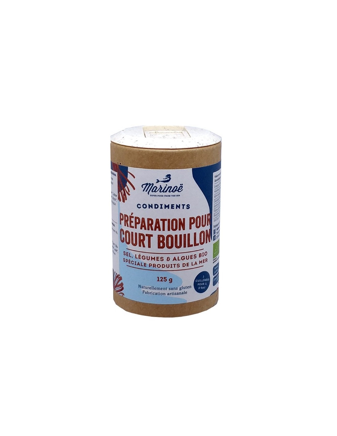 Marinoë ti propone un preparato per brodo con sale marino, alghe di Bretagna (Dulse, Lattuga di mare, Nori e Wakame), verdure (porri, carote) ed erbe aromatiche (timo, alloro, rosmarino, aglio e chiodi di garofano )