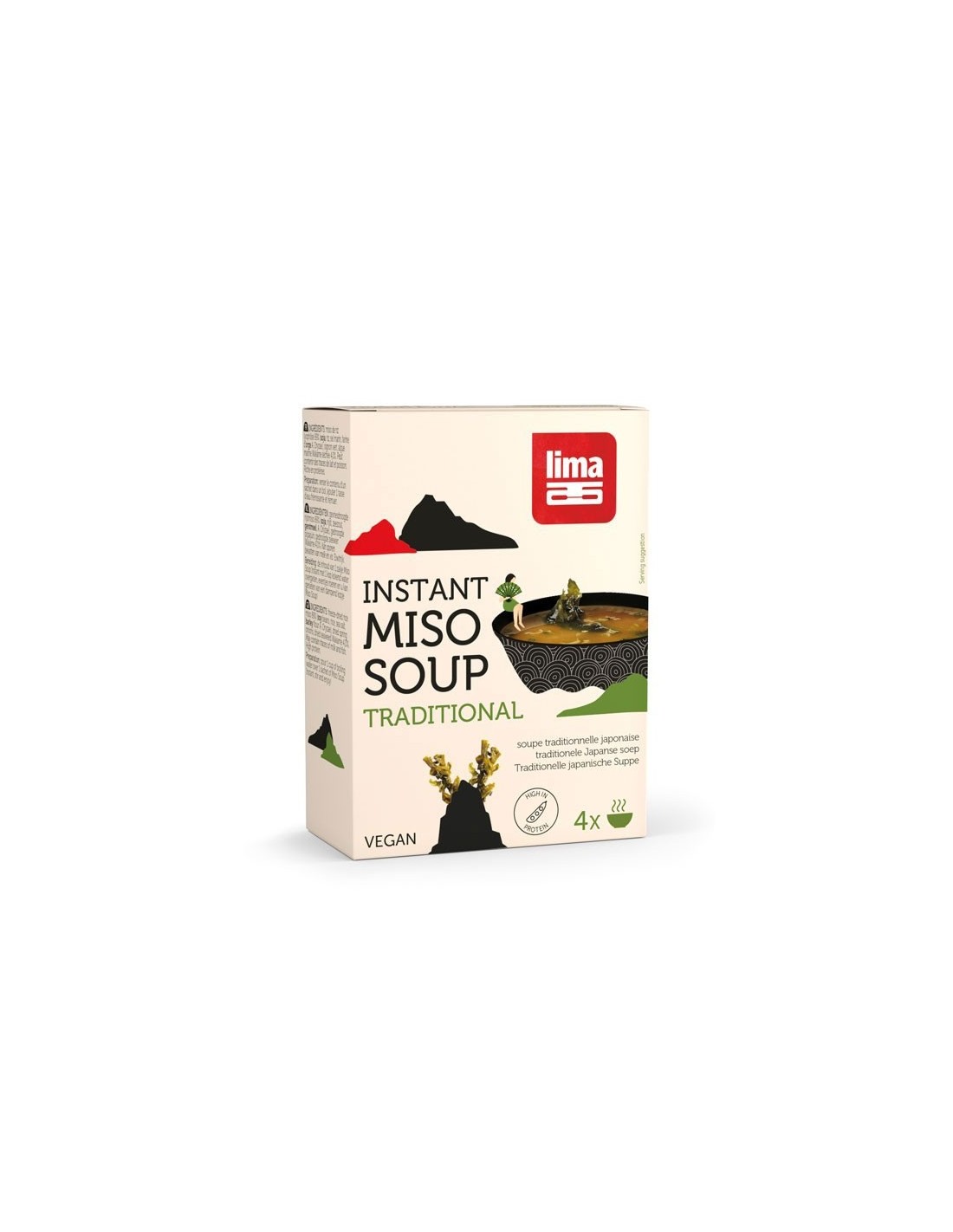 Miso di riso liofilizzato 89% (SOIA, riso, ORZO, sale marino, koji (A. Oryzae)), cipolla essiccata, alga wakame essiccata 4%.