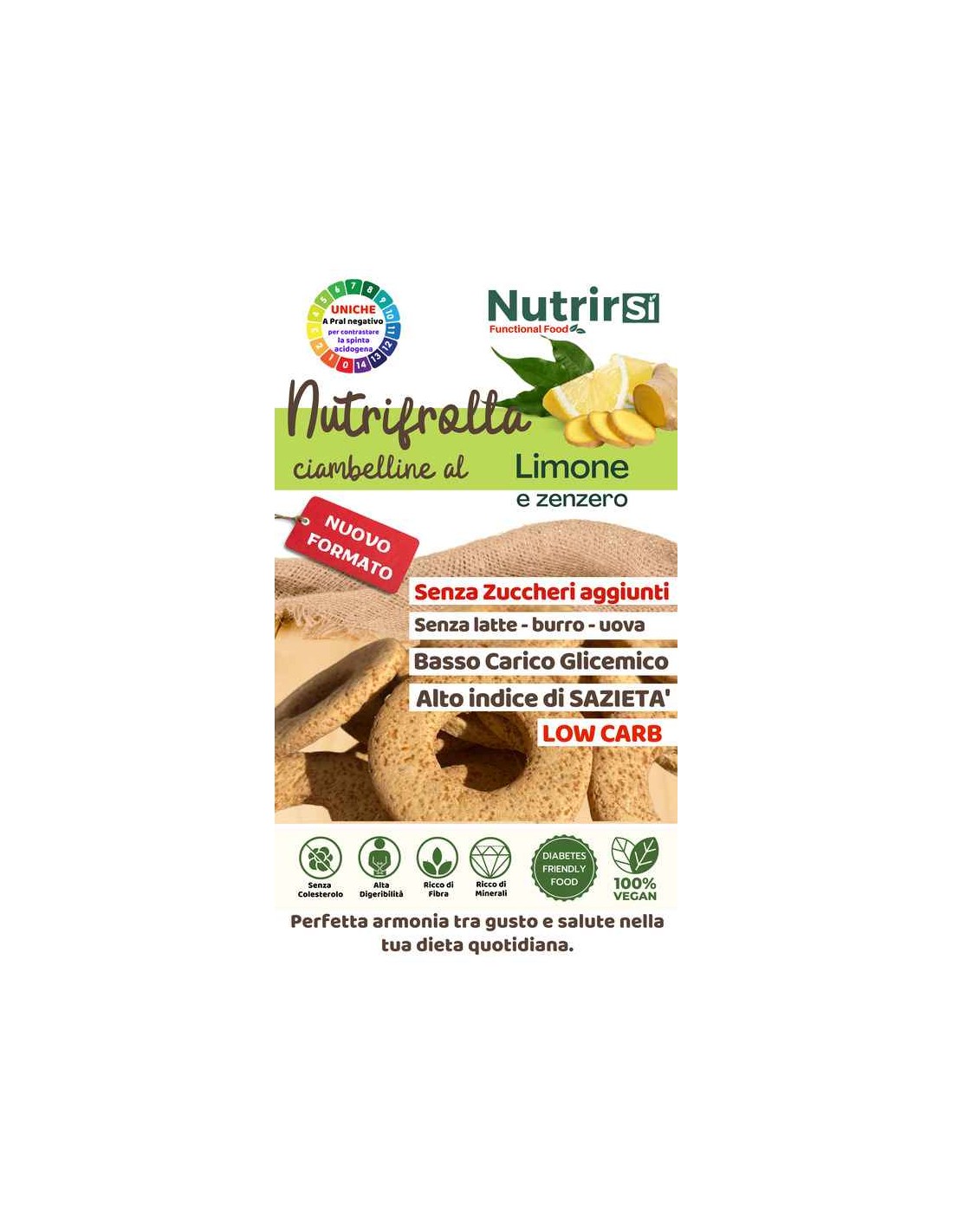 💡 Il tuo benessere parte da qui! Gusta il sapore irresistibile dello zenzero e del limone in un biscotto innovativo, formulato per chi cerca un'alimentazione sana e bilanciata. Con ingredienti di origine 100% vegetale e un basso impatto glicemico, NutriFrolla è la scelta perfetta per chi vuole nutrirsi in modo consapevole senza rinunciare al gusto.